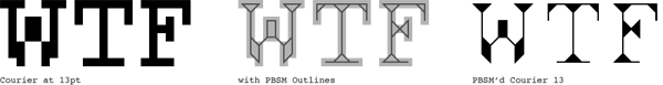Typefaces undergo a complex degradation procedure to be displayed as accurately as possible on screen via bitmap font files. Written in Macromedia Director, the PostBitScriptMapper (PBSM) type generator attempts to work the opposite way by using a simplistic enhancement routine to attempt a recreation of the original typeface from bitmap sources. PBSM’s resulting letterforms expose the flawed translation process and celebrate the eccentricity of its limited amplification algorithm.
